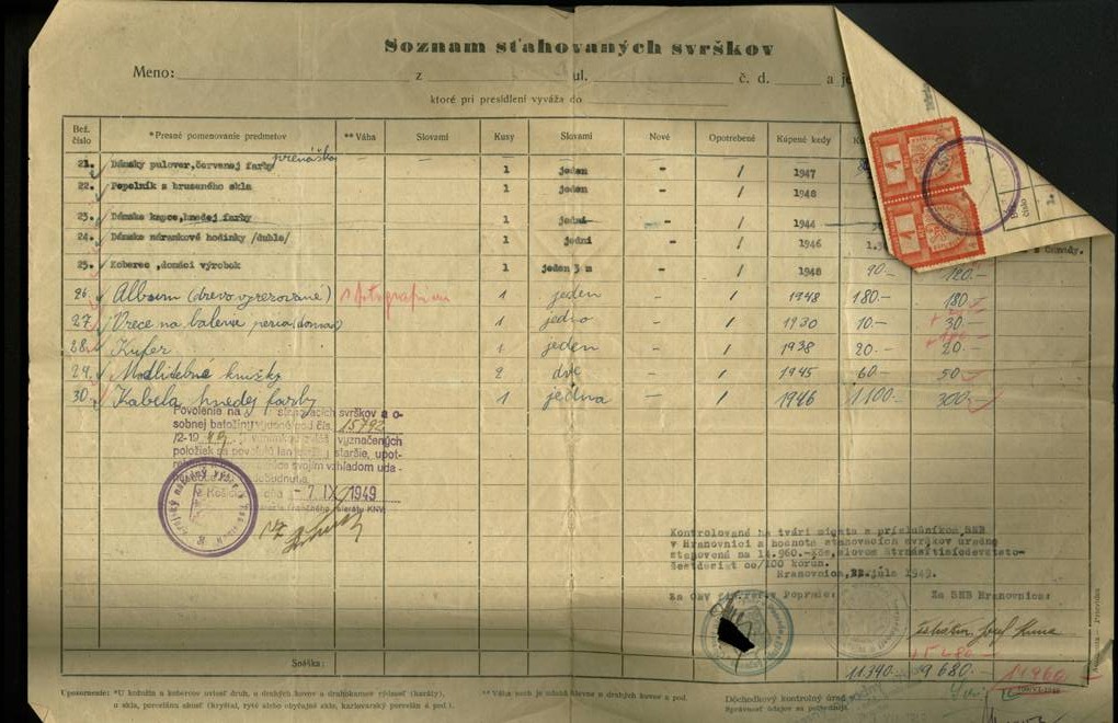 Po tretie, môžeme sa v listine dočítať, kedy ktorá vec bola kúpená, akú mala hodnotu v čase kúpenia (rozpätie 1923-1948) a v čase vystavenia tohoto zoznamu (1949).