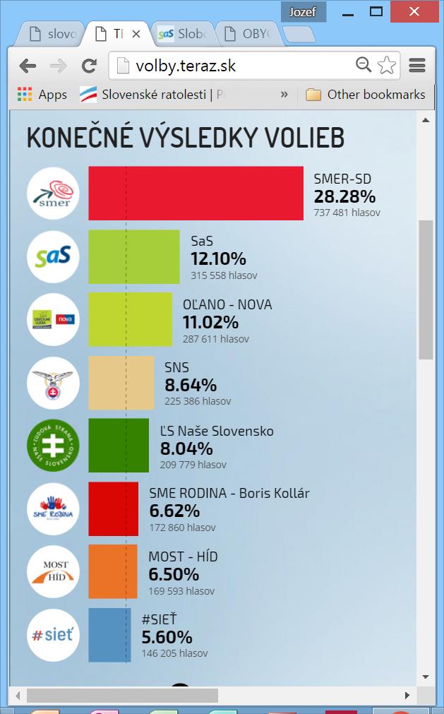 Skončili sa voľby do Národnej Rady Slovenskej Republiky.  V sobotu, 5.marca 2016 sa volieb zúčstnilo 59.82 percenta oprávnených voličov, ktorí svojimi hlasmi rozhodli, že sa do slovenského parlamentu dostalo 8 politických strán.
